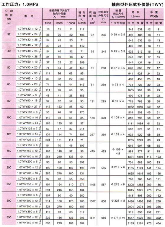 軸向型外壓式波紋補(bǔ)償器(TWY)參數(shù)3
