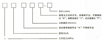 表示公稱通徑為500mm,工作壓力為0.6MPa,長度為1500mm,不銹鋼法蘭連接的小拉桿橫向波紋補償器。