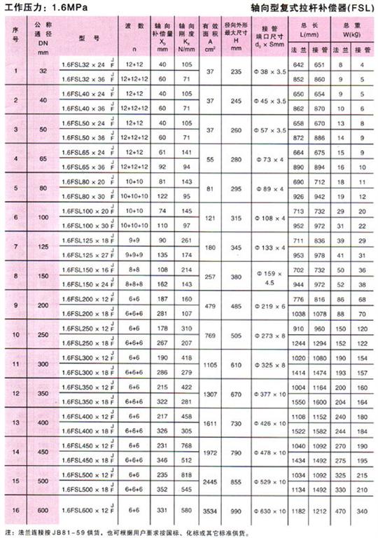 軸向型復(fù)式拉桿波紋補償器(FSL型)參數(shù)3